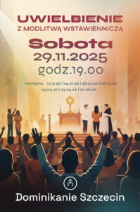Serdecznie zapraszamy na nabożeństwo wielbieniowe, które odbędzie się w sobotę, 29 listopada 2025 r., o godz. 19:00 w kościele oo. Dominikanów w Szczecinie.
