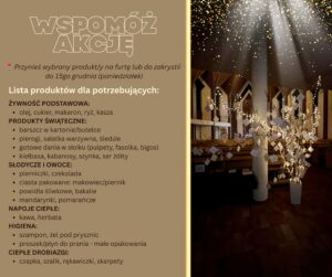 Wybierz cokolwiek z listy produktów i przynieś wybrany produkt/y na furtę lub do zakrystii do 15go grudnia (poniedziałek).